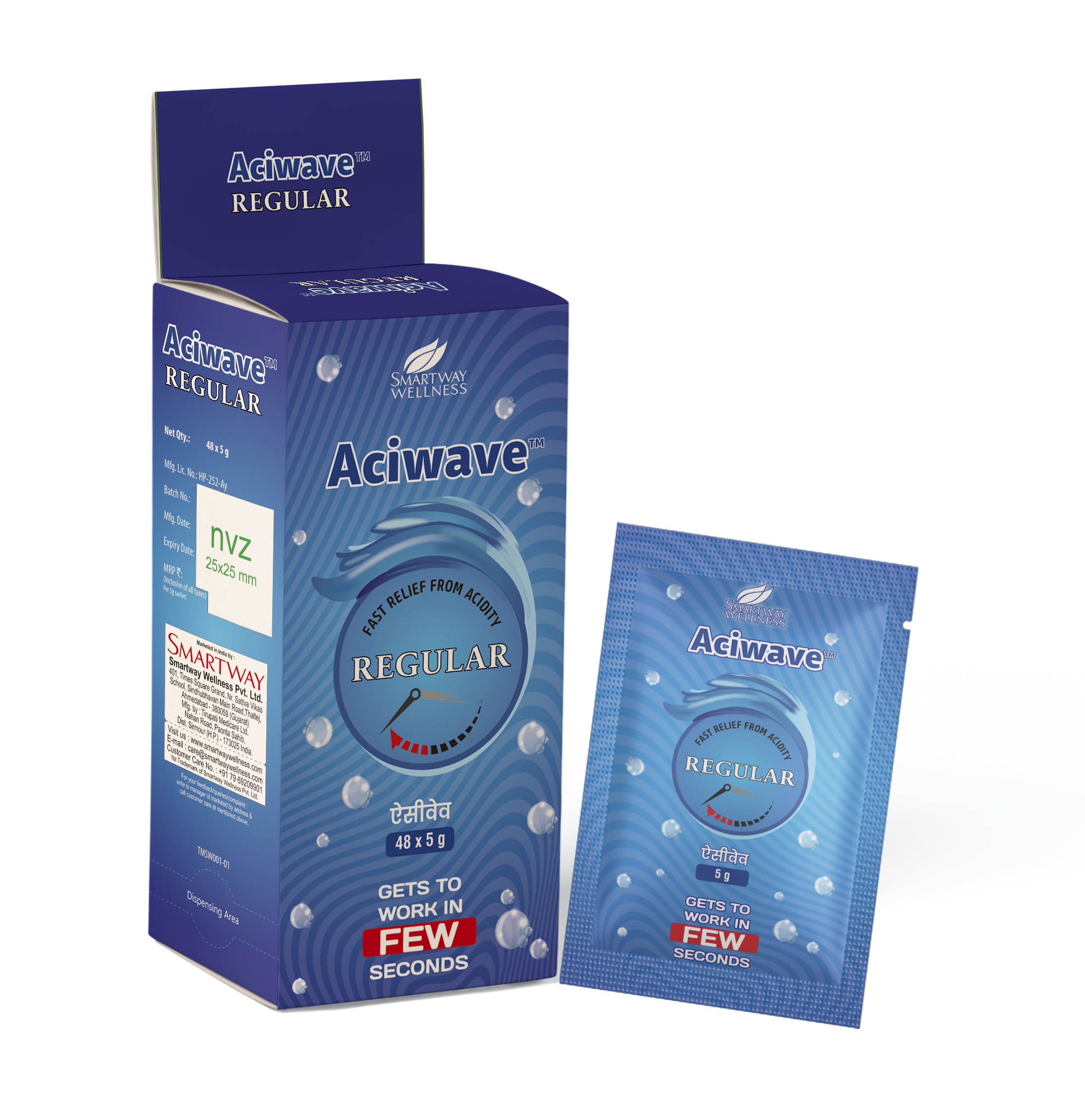Aciwave Regular Sachet powder is indicated for the symptomatic relief of heartburn, acid indigestion, sour stomach, and upset stomach.