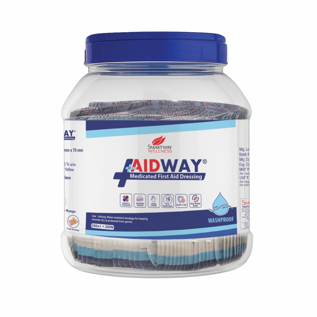 Aidway Washproof Bandage to cover, protect, and help heal minor cuts, scrapes, and other small wounds by keeping them clean and free from dirt and bacteria.