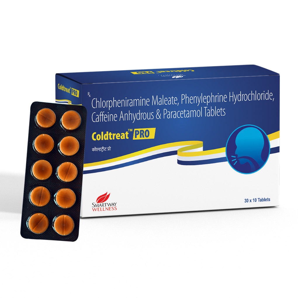 Coldtreat Pro Tab is used to treat symptoms of the common cold and allergies like sneezing, runny/stuffy nose, fever, headache, body pains, congestion, or watery eyes.