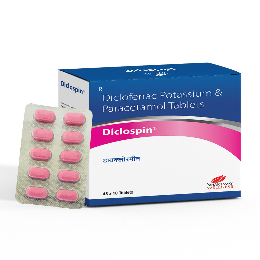 Diclospin Tab Pink is a medication used to relieve pain and inflammation. It contains Diclofenac Sodium, a non-steroidal anti-inflammatory drug (NSAID) that effectively reduces pain, swelling, and inflammation associated with various conditions.