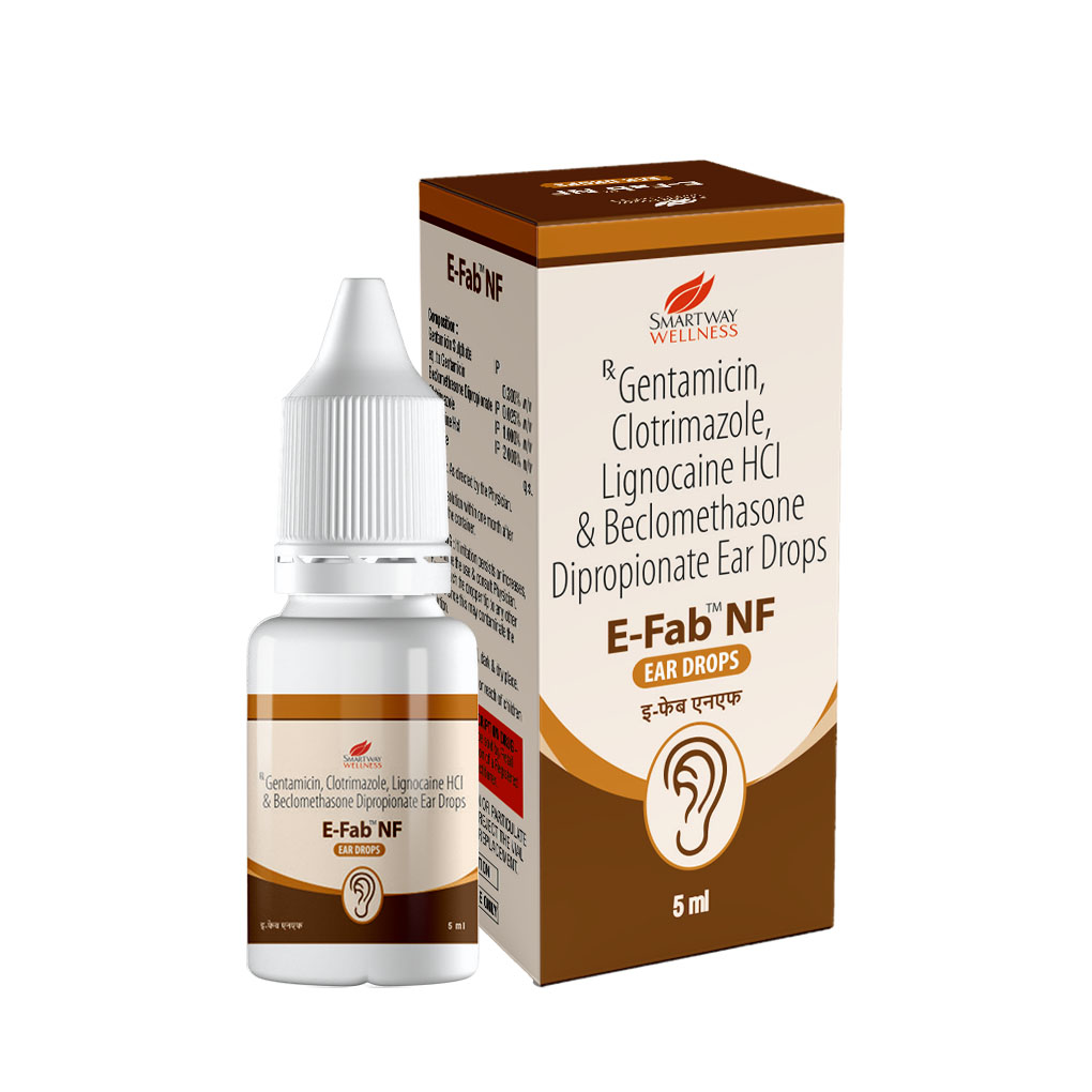 E Fab NF Eye Drops is used to treat ear infections. It prevents the growth of the bacteria that cause infection in the ears. It also relieves the symptoms of inflammation such as redness, itchiness, and irritation.