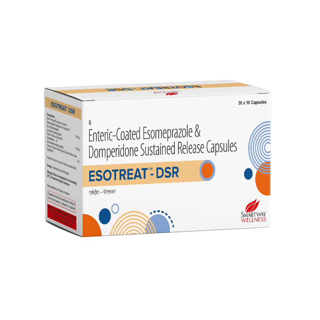 Esotreat DSR Cap contains Esomeprazole 40mg, designed to provide effective relief from acidity. By reducing the amount of stomach acid produced, it helps alleviate discomfort related to heartburn and acid reflux.
