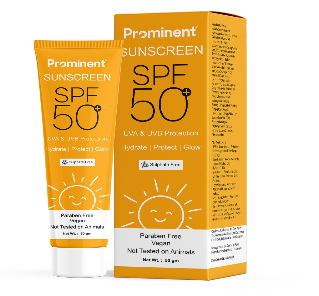 Prominent Sunscreen 50 SPF Gel 50 gm helps to keep your skin feeling soft, smooth, and deeply hydrated. protects your skin from the harmful UVA/UVB rays. Its super lightweight texture blends easily into your skin, leaving behind no white cast.