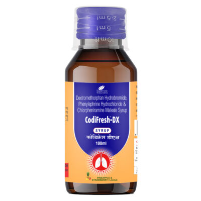 Respifresh D Syrup provides effective relief from cough and cold symptoms. Enriched with active ingredients, this syrup helps to soothe irritated respiratory passages and is used as a treatment for cough and cold. It fights against allergic reactions and helps to get relief from runny or stuffy nose, sneezing, pain, and watery eyes.